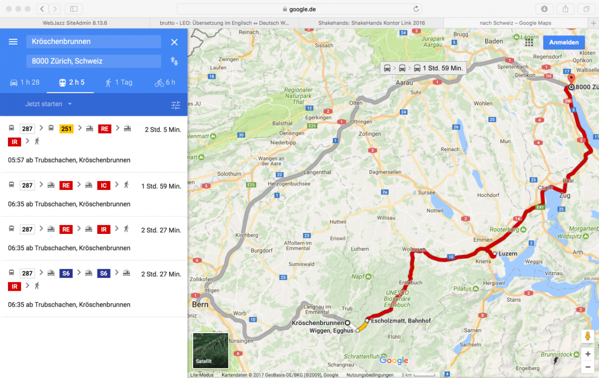 Zeigen Sie Routen über Google-Maps© einfach an oder öffnen Sie Apps via einen direkten Link für die ÖV-Reisen oder das Portal sbb.ch an. So planen Sie Reisen und können später die Reisetätigkeit nachträglich vollziehen.