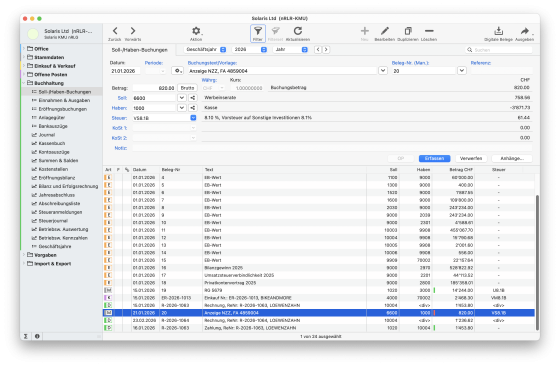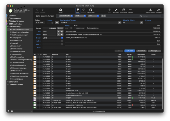 shakehands Kontor 2026 – Buchungsdialog Soll-/Haben Apple macOS (Light Mode)