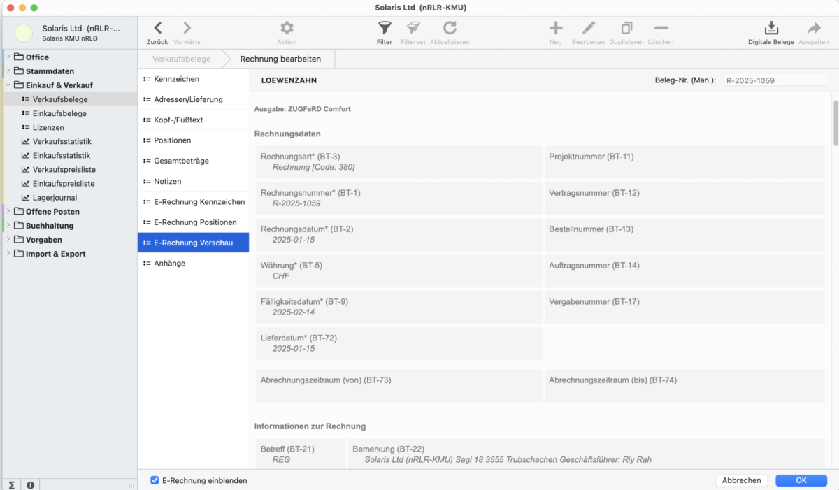 - Ausgabefunktion der digitalen XRechnung unterstützt jetzt den Standard 3.0.1 für das Jahr 2024