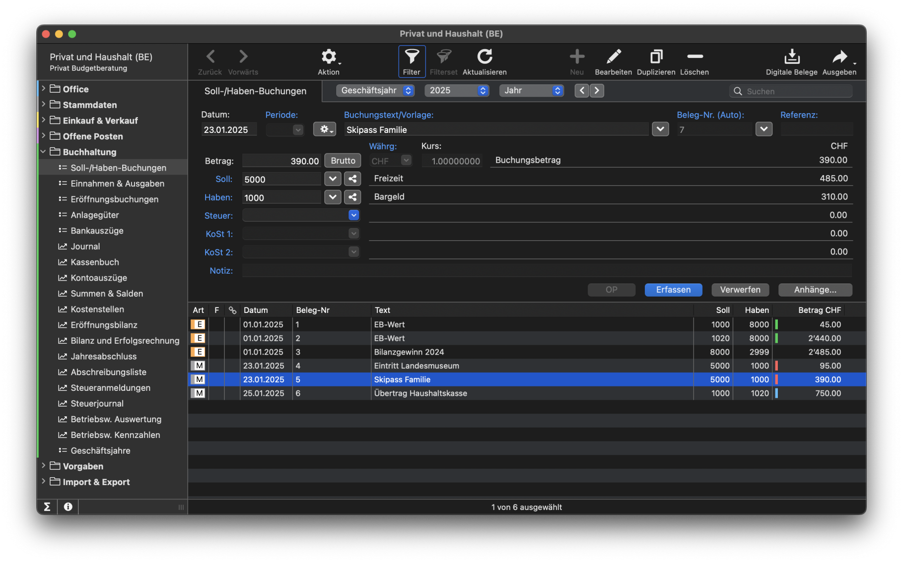 Für Haushalt, Home-Office oder private Finanzen stehen dir weitere praxisnahe Vorlagen zur Verfügung – inklusive einfachem «Milchbüchli»-Buchungsdialog, um dich in die Buchungswelt einzuarbeiten.