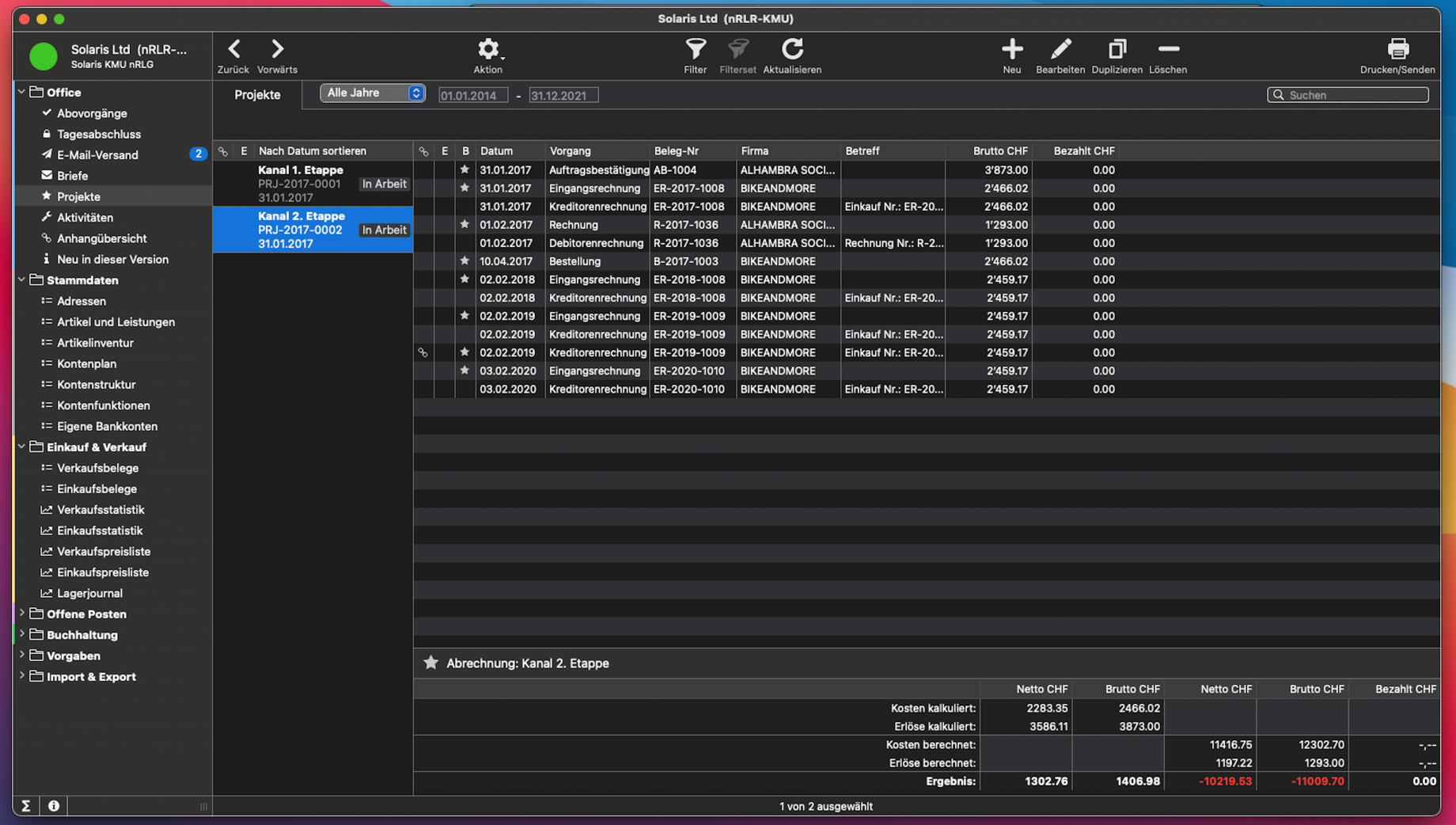 - (ab 14.2) Projekte lassen sich unabhängig vom Belegstatus bei Aufträgen, Bestellungen und Briefen nachträglich zuordnen.